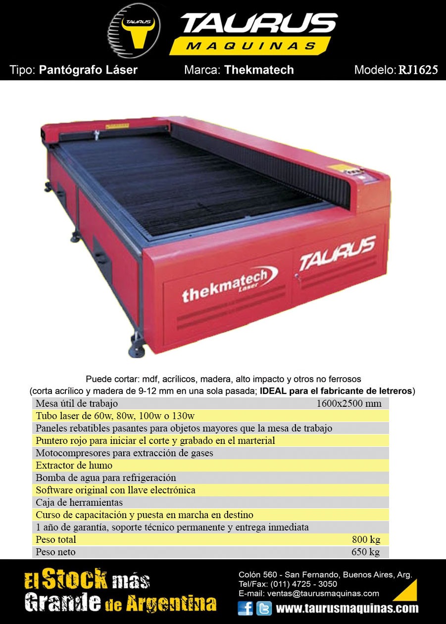 PANTOGRAFO LASER RJ1625. Bomba de agua. Software original con llave electrónica. Ideal para cortar: mdf, acrílicos, madera, alto impacto y otros no ferrosos. Marca: THEKMATECH