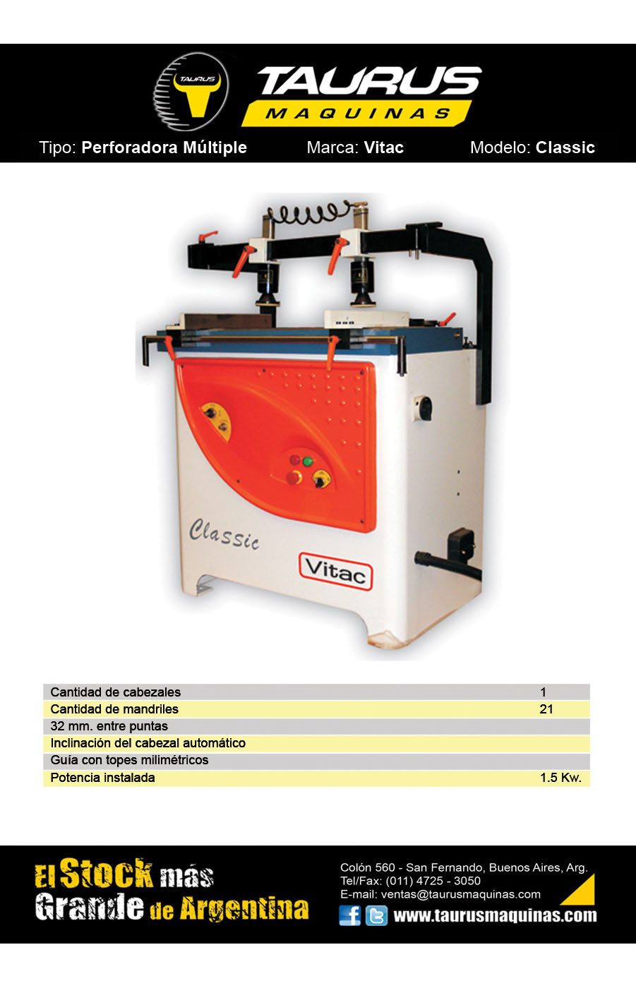 PERFORADORA MULTIPLE MODELO CLASSIC. Para embalaje completo de muebles para pequeñas industrias. Fácil puesta a punto. Marca: VITAC