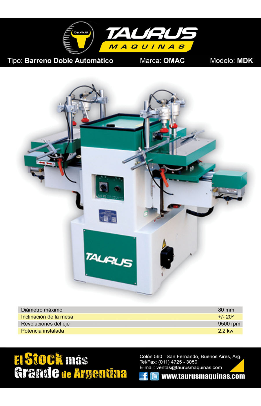 BARRENO DOBLE AUTOMATICO. Para realizar perforaciones de madera. Doble cilindro de apriete. Doble prensor neumático. Velocidad de oscilación variable. Marca THEKMATECH