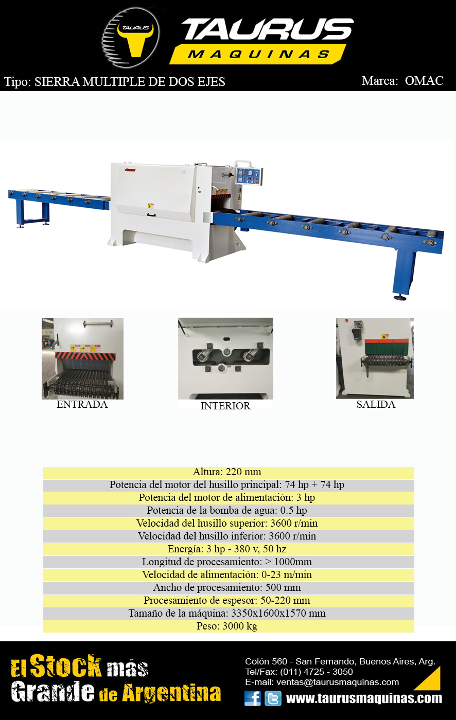 SIERRA MULTIPLE DE DOS 2 EJES. Carpinteria interior / muebles / tableros / aserraderos. Marca: Omac