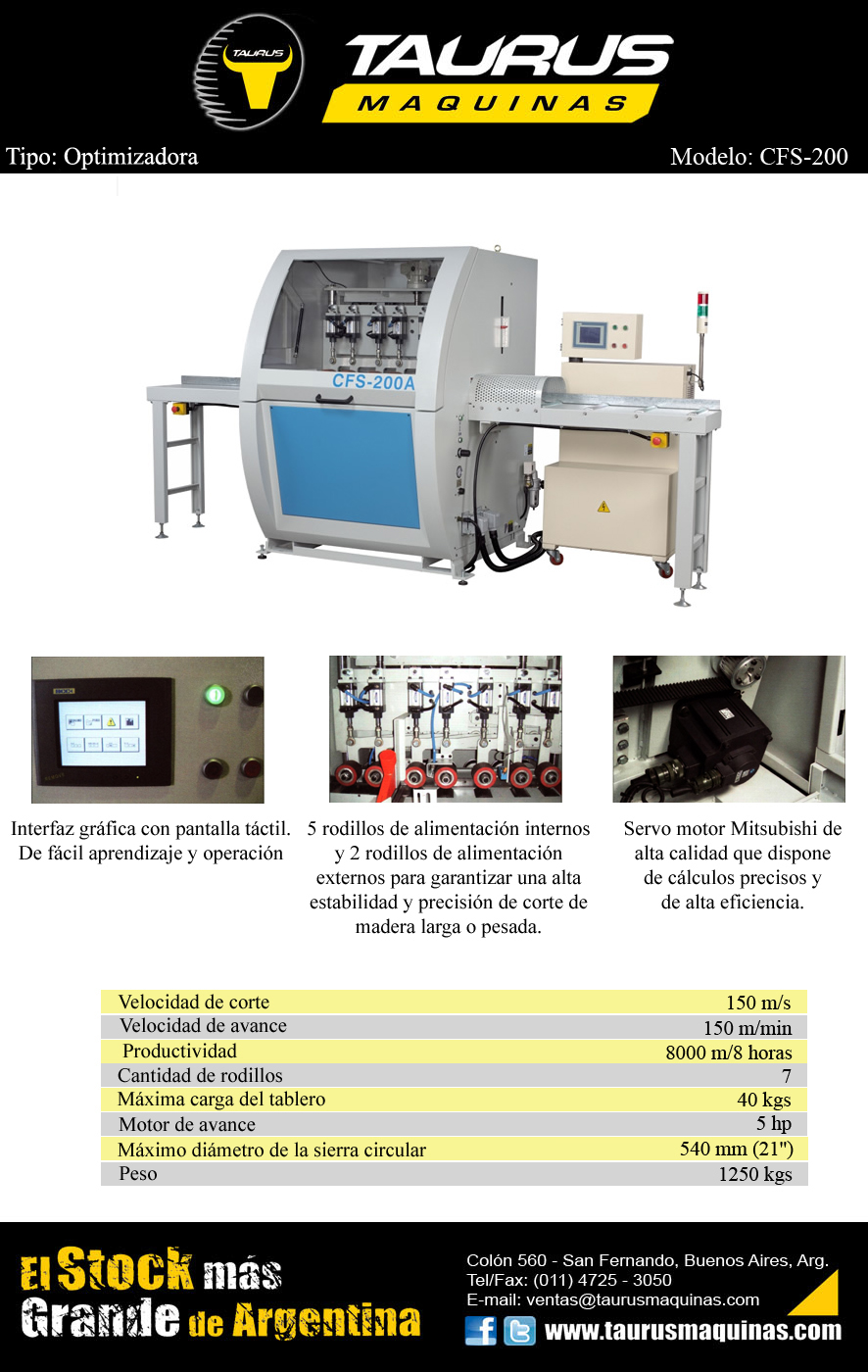 OPTIMIZADORA CFS-200. Interfaz con pantalla táctil. 5 rodillos internos y 2 externos. Servo motor Mitsubishi. Marca: Taurus